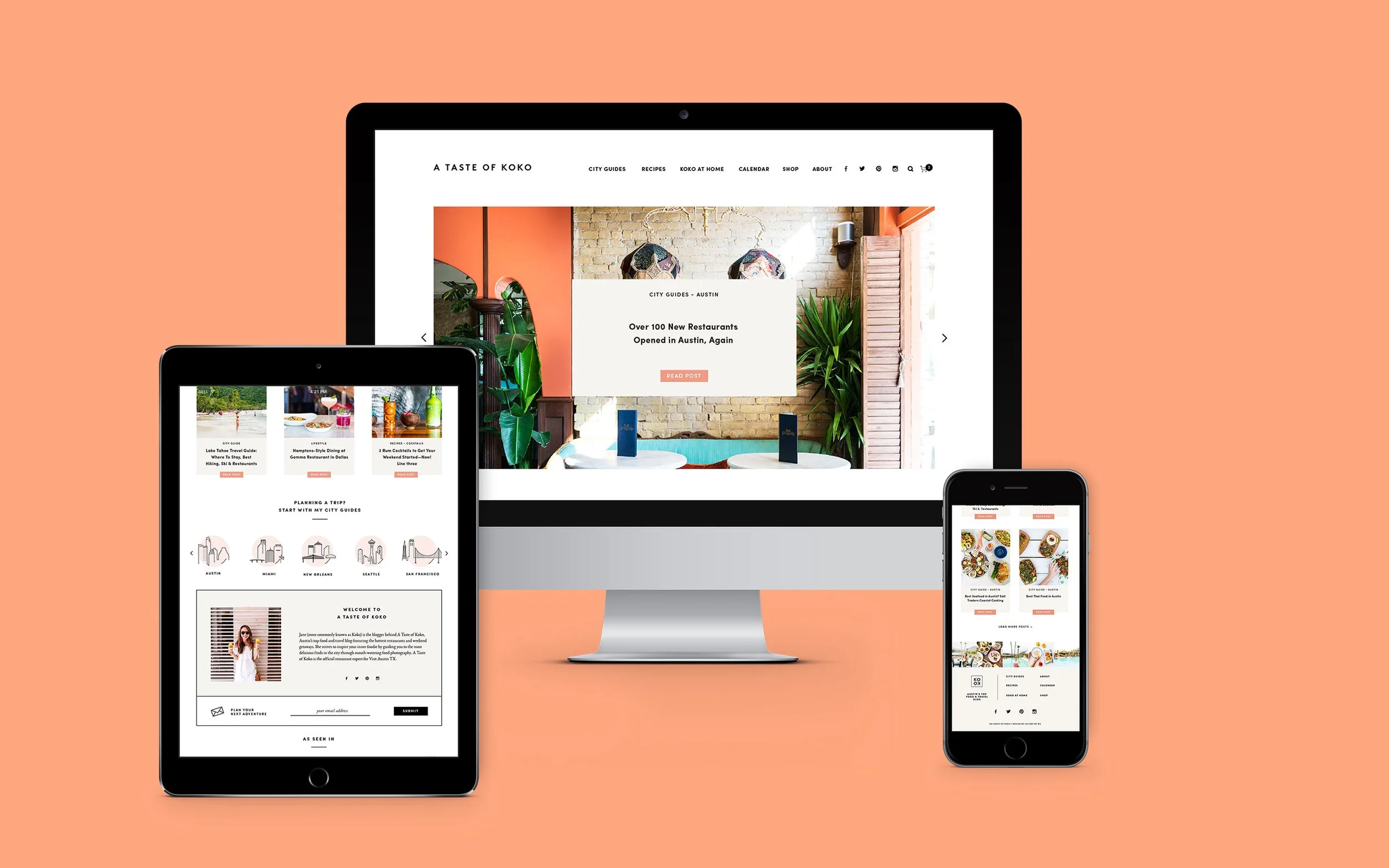 Brand identity and custom Wordpress website for Austin-based food and travel influencer, Jane Koko aka A Taste of Koko.